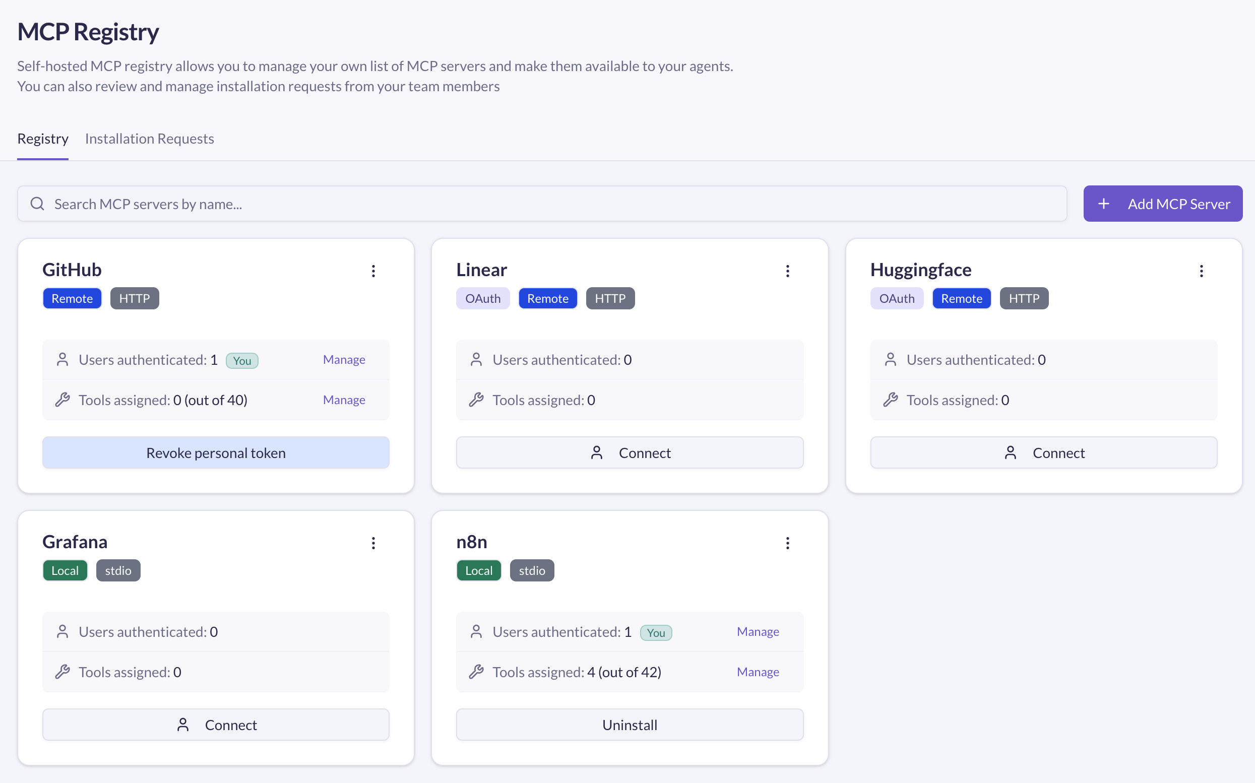 A central place to add "approved" MCP servers. We've put a lot of effort into making this UI friendly. The nice thing is that it supports self-made MCP servers, making it an easy way to deploy your MCP and share it with colleagues, yay!