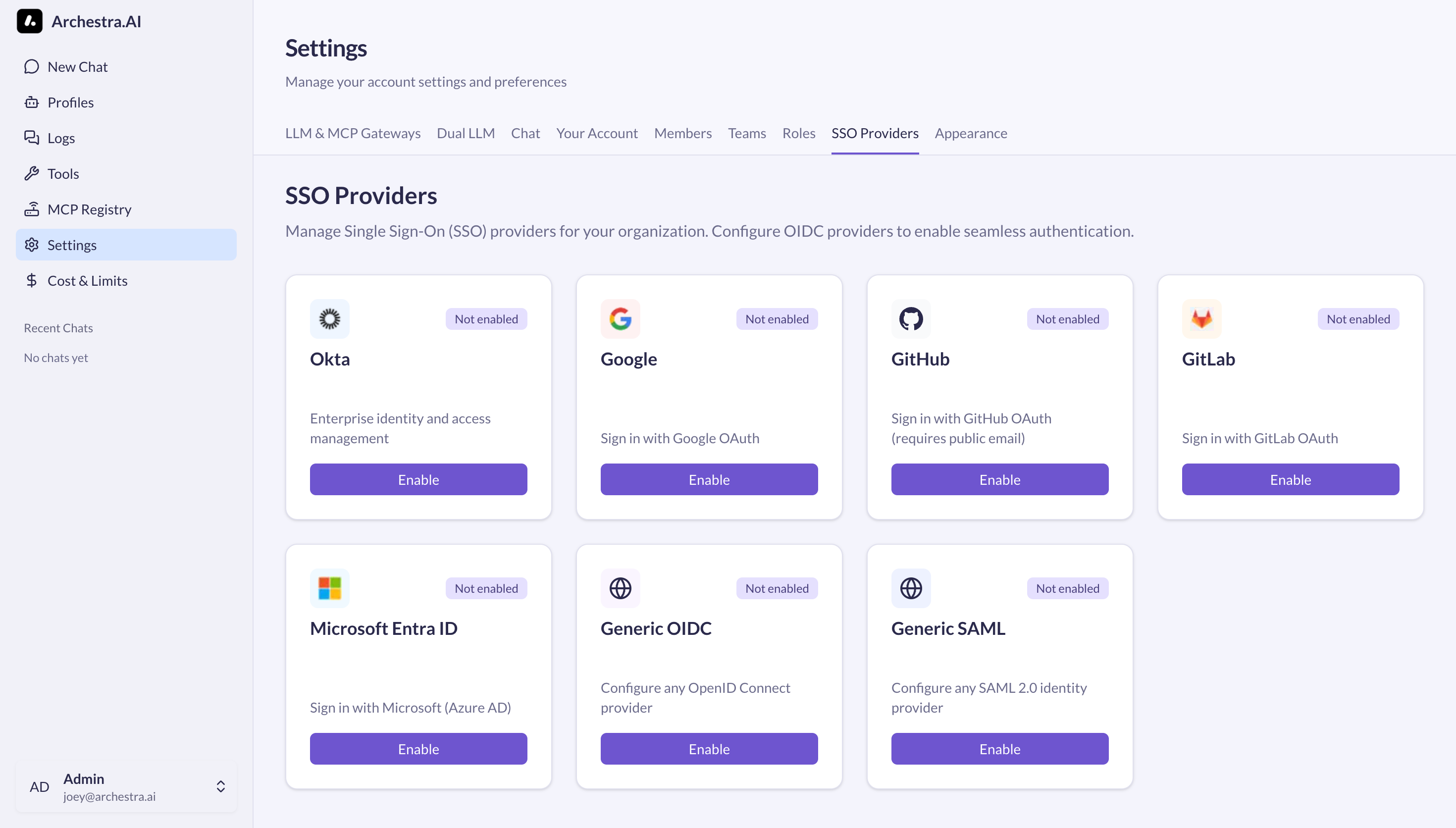 Archestra supports Identity Provider (IdP) configuration for two purposes: